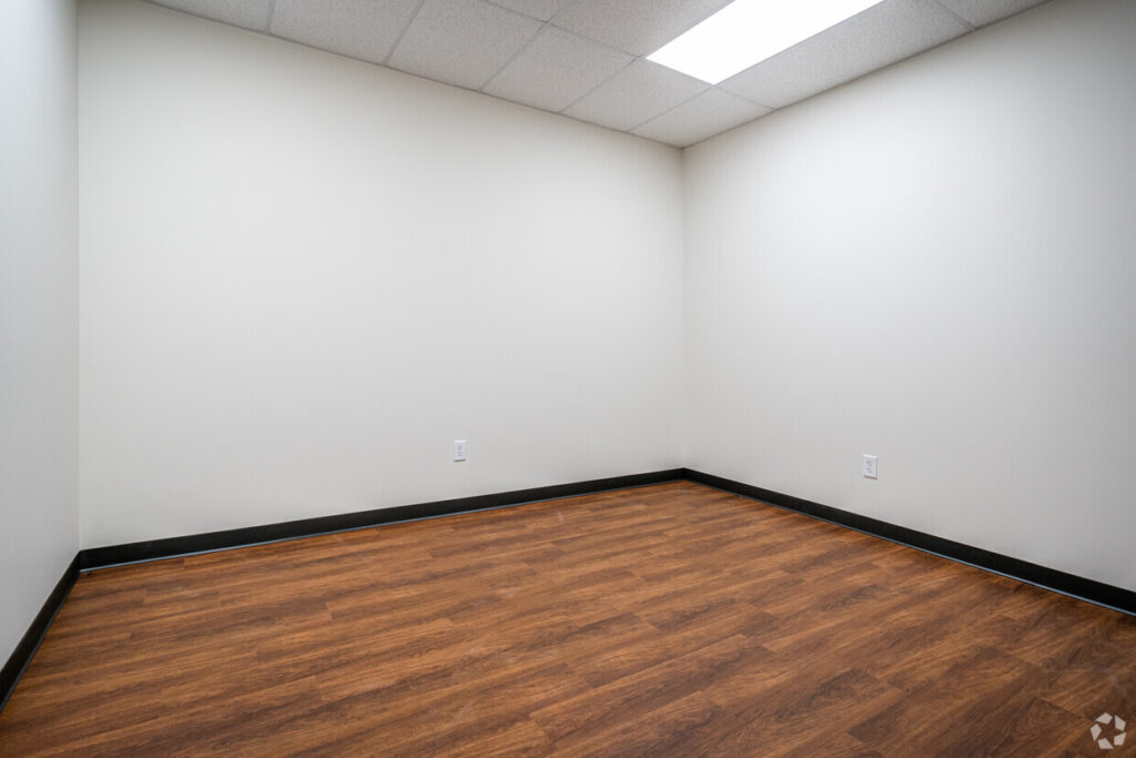 Offices include LED Lighting, 9-foot ceilings, Raco doors and woodgrain vinyl laminate flooring.